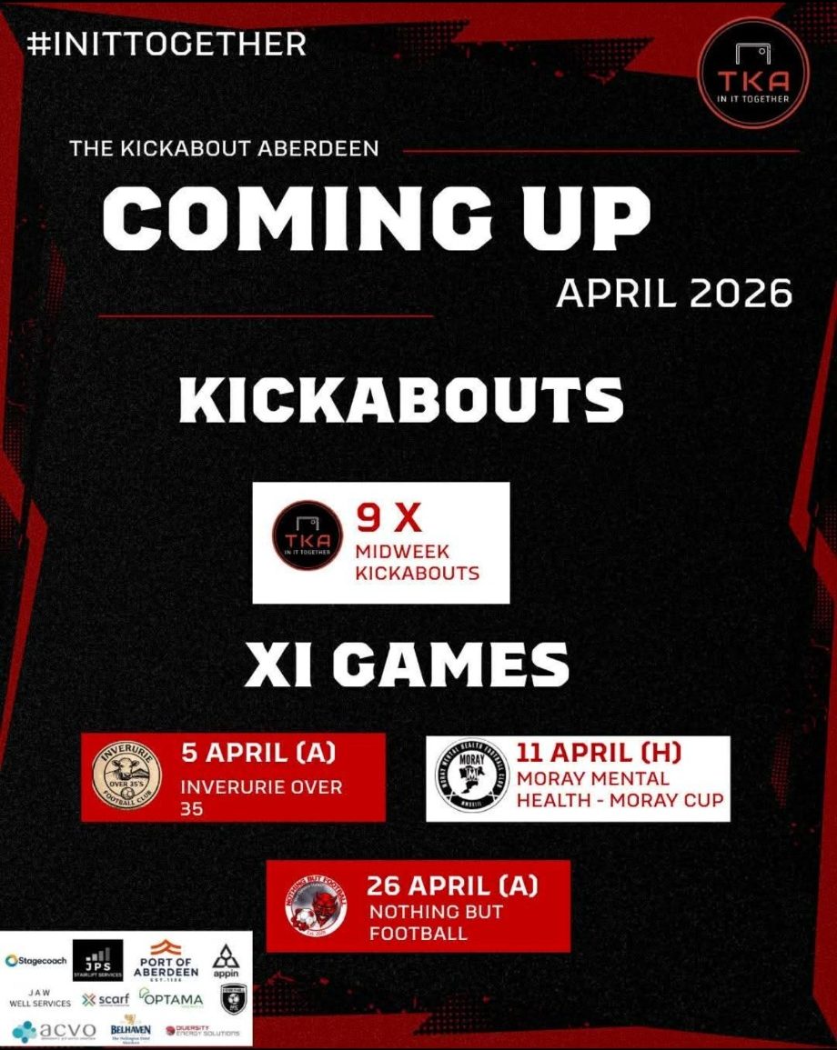 On Saturday 25th October we played a friendly match against Sunday Soccer Club on a very wet and windy Balmoral Stadium in Cove. Greig made his managerial debut for this match. You can get involved in matches like these and our kickabouts by clicking the link below, Tka offers more than just football. Friendships, support network or even just somebody on the end of a phone.